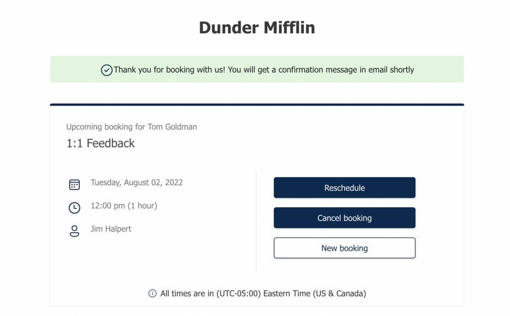 And now you are ready to test the flow. Below is an example of an appointment example that Tom from Blue Cross set up with his sales rep Jim Halpert.