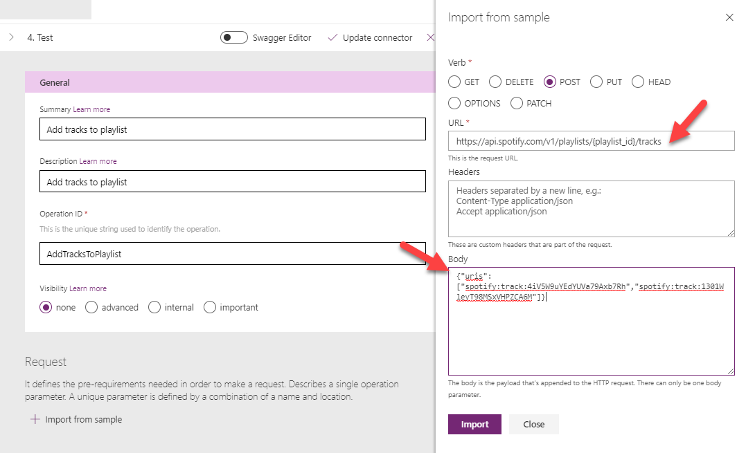 Next, click on “Import from Sample” under the Request section to define the endpoint we