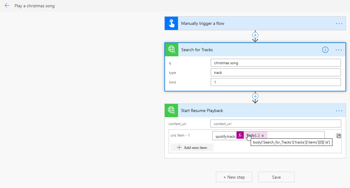 body('Search\_for\_Tracks')\['tracks'\]\['items'\]\[0\]\['id'\]